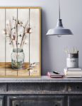 A mason jar with a bouquet of cotton in earth tones, by Marla Rae. This high quality hand-stretched fine art canvas print is framed in a .75" golden oak float frame. A beautiful piece of framed artwork that will look great in any home as a focal piece. Choose a size below. To request a custom size or frame use the Contact Us tab.
