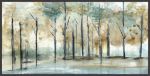 A hazy forest landscape in teal hues, by Susan Jill. This high quality hand-stretched fine art canvas print is framed in a .75" dark walnut float frame. A beautiful piece of framed artwork that will look great in any home, adding warmth and character.