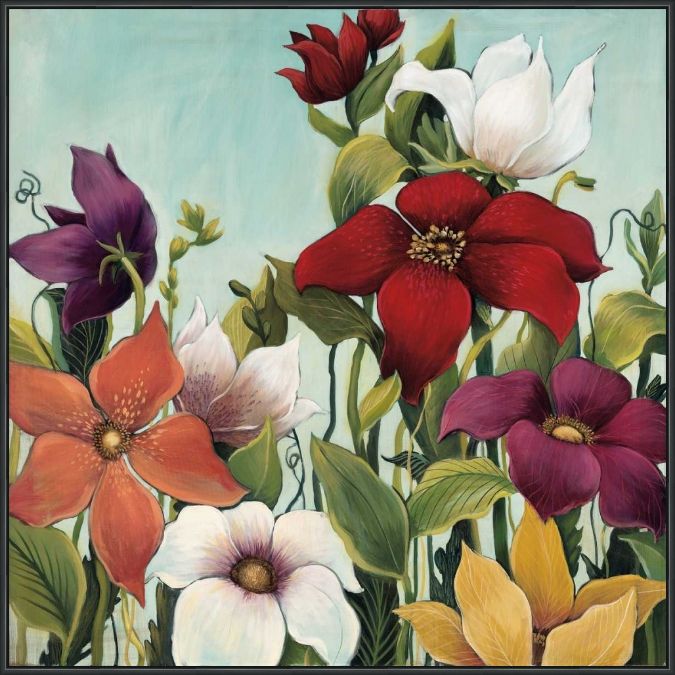 A garden mix of beautiful colors in multiple-color tones, by Maja. This high quality hand-stretched fine art canvas print is framed in a .75" matte black float frame. A beautiful piece of framed artwork that will look great in any home as a focal piece. Choose a size below. To request a custom size or frame use the Contact Us tab.