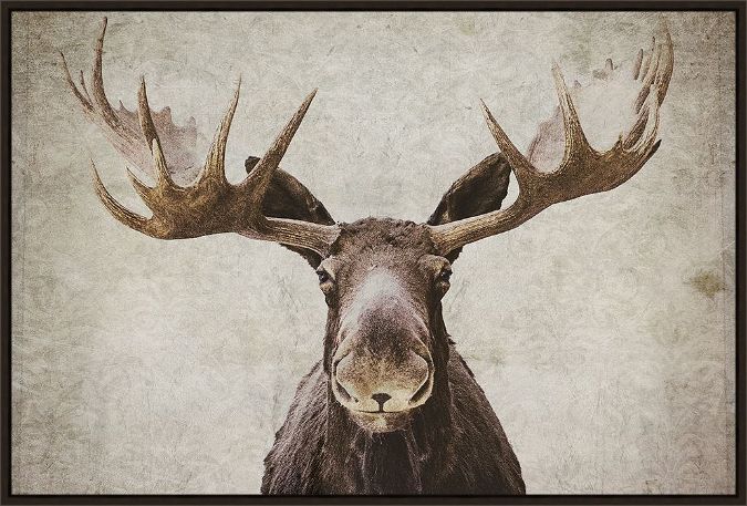 A majestic moose in sepia hues, by Natasia Cook. This high quality hand-stretched fine art canvas print is framed in a .75" espresso walnut float frame. A beautiful piece of framed artwork that will look great in any home as a focal piece.