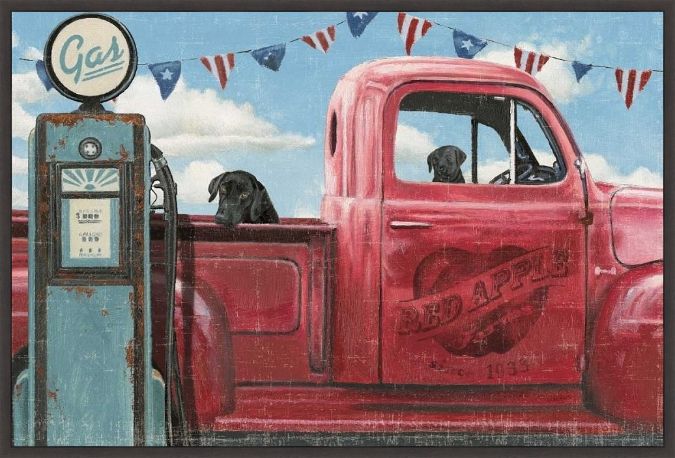 A classic farmhouse image, in patriotic tones, by James Wiens. This high quality hand-stretched fine art canvas print is framed in a .75" dark walnut float frame. A beautiful piece of framed artwork that will help make your house a home. Choose a size below. To request a custom size or frame use the Contact Us tab.