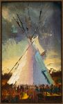 A strong textured tribute to early plains living in bright contrasting tones, by Diane Whitehead. This high quality hand-stretched fine art canvas print is framed in a .75 inch walnut grained float frame. A beautiful piece of framed artwork that will add uniqueness to any space. Choose a size below. To request a custom size or frame use the Contact Us tab.