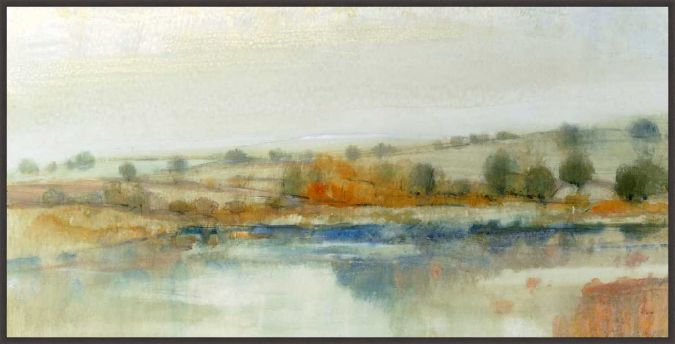 A gorgeous watercolor landscape in earthtone hues, by Tim O'Toole. This high quality hand-stretched fine art canvas print is framed in a .75" dark walnut float frame. A beautiful piece of framed artwork that will look great in any home as a focal piece.