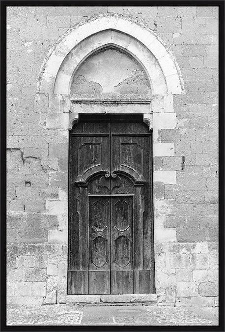 A entrance to an ancient church in black and white tones, by Laura Denardo. This high quality hand-stretched fine art canvas print is framed in a .75" matte black float frame. A beautiful piece of framed artwork that will look great in any home as a focal piece. Choose a size below. To request a custom size or frame use the Contact Us tab.