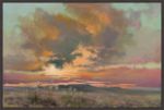 A vast open prairie stretches toward the mountains under an endless horizon in orange and pink tones, by H.C. Zachry. This high quality hand-stretched fine art canvas print is framed in a .75" dark walnut float frame. A beautiful piece of framed artwork that will look great in any home as a focal piece. Choose a size below. To request a custom size or frame use the Contact Us tab.