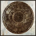A vibrant gold geometric piece in gilded hues, by Tom Reeves. This high quality hand-stretched fine art canvas print is framed in a .75" espresso walnut float frame. A beautiful piece of framed artwork that will look great in any home as a focal piece.